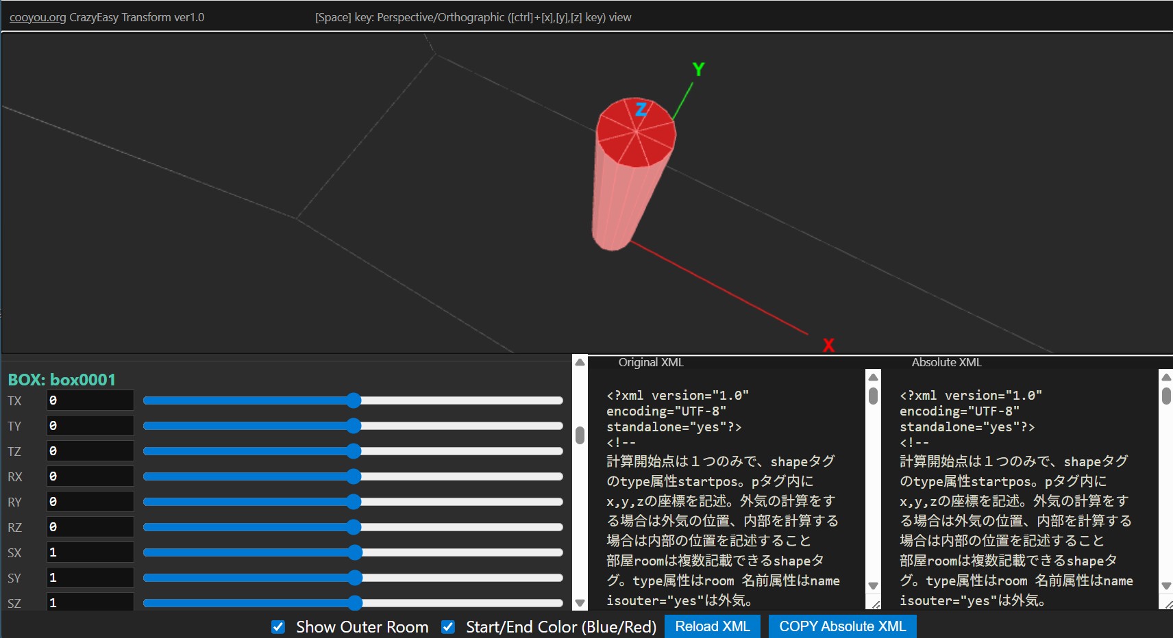 画面左側にXMLのテキストが表示されてますので、そこを編集することで、右側画面のモデル表示の形状が変化します。