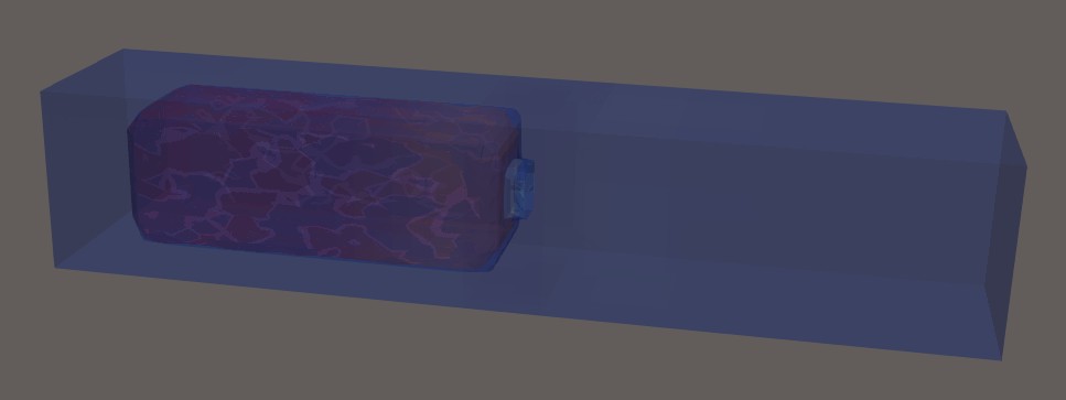 よく見ますと、全体を囲うような直方体がありますね。これは外気の空間を表わしてます。シミュレーションで計算される範囲を示してます。