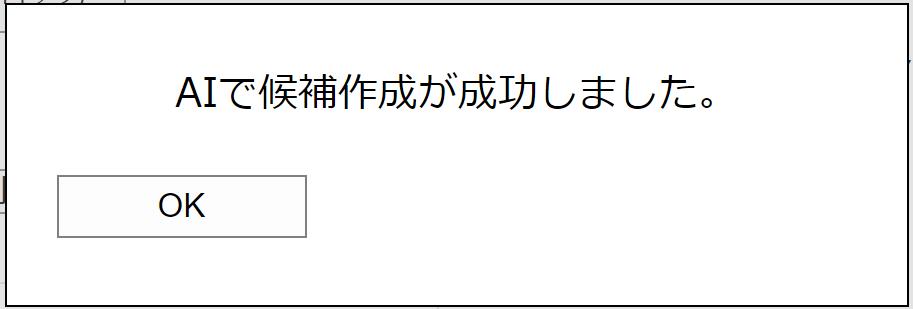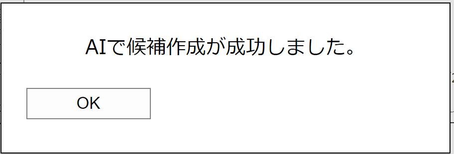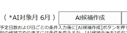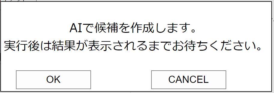 条件等の各種入力が済みましたら、[AI候補作成]ボタンで実行できます。対象月は集計表での対象月と同じです。