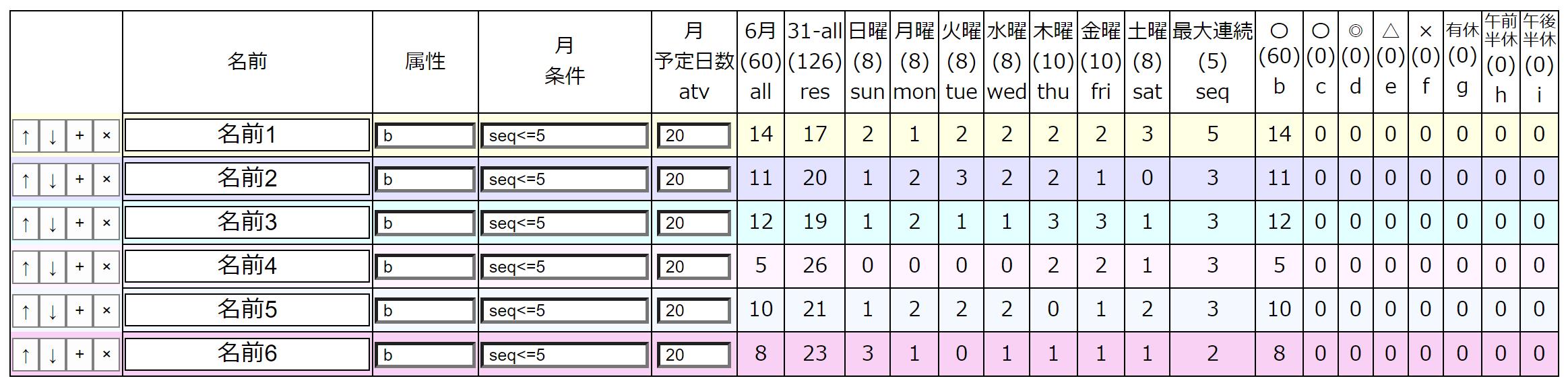 第1に優先されるのは、各人の属性を考慮して、日ごとの条件を満たすこと、です。
