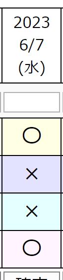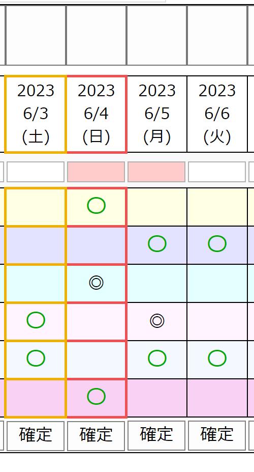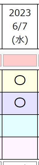 デフォルトでは集計表での属性欄には全員bが設定されてます。これは、日程表の全員の行に〇マークを打てるという意味です。