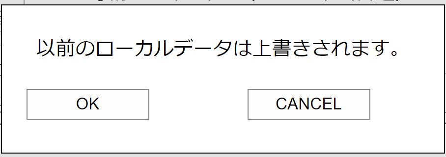 ローカルストレージに保存するには、[ローカル保存]ボタンを押します。上書き確認メッセージが出ますから[OK]ボタンを押すと、完了のメッセージが表示されますので[OK]ボタンを押してください。