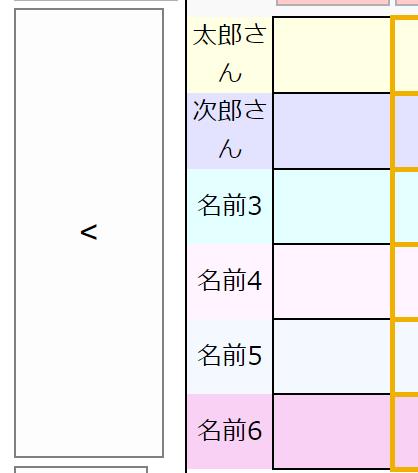 ×マークのような、数が0のマークは集計表で人に関連付ける必要はありません。誰の行にでも打ち込めるマークとして認識されます。