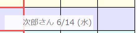 例えばデフォルト(初期値)では、日ごとの条件として、b2という条件に設定されてます。これは日程表の左端に記載されてます。