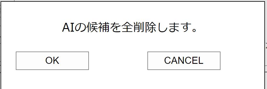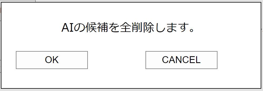 候補を全て削除するには[AI候補全消去]ボタンを押して、確認メッセージで[OK]ボタンを押してください。