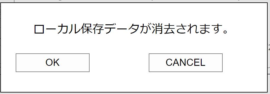 ローカル保存のデータを消去するには、[ローカルクリア]ボタンを押してください。確認メッセージで[OK]ボタンを押すとデータが消去されます。