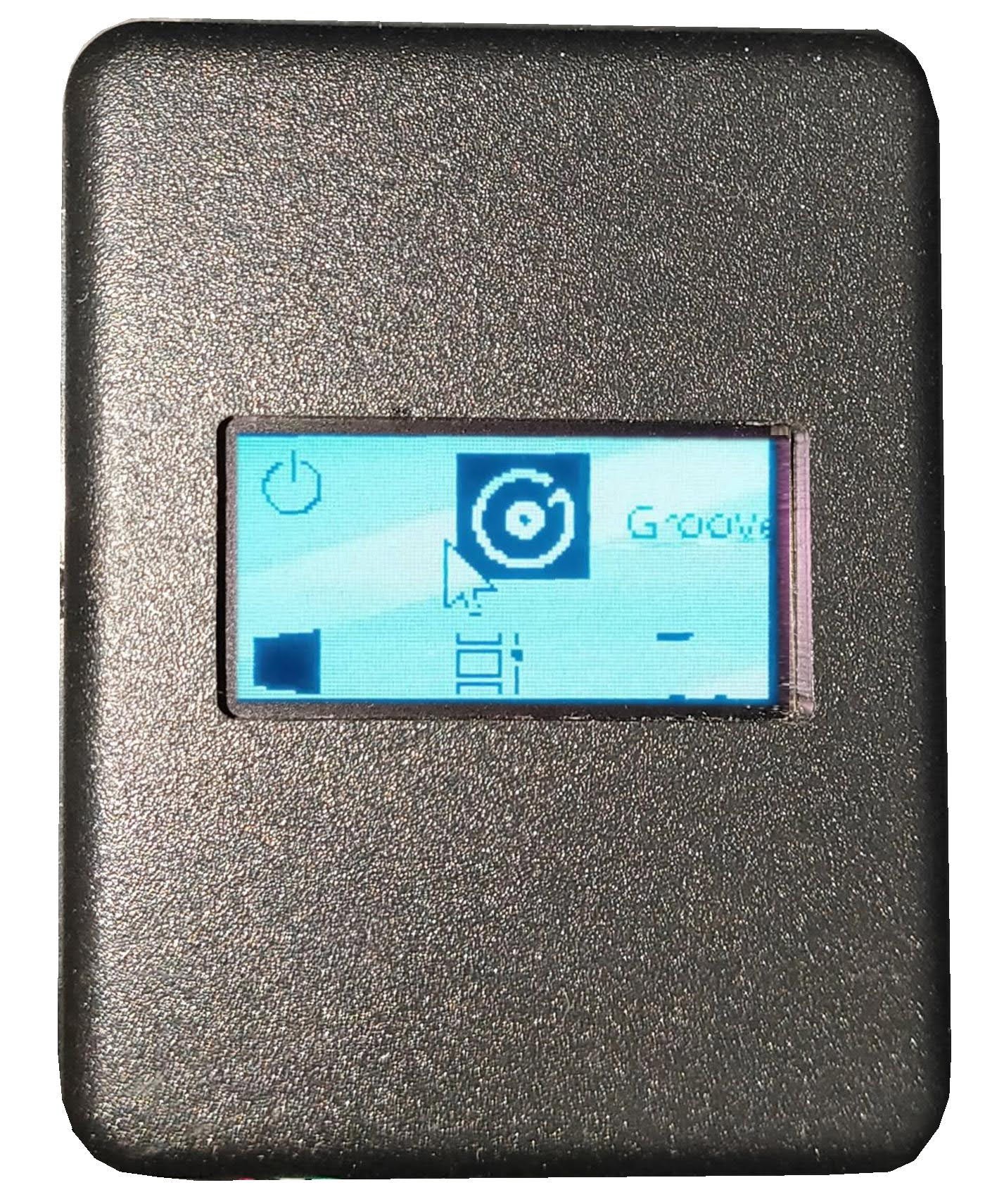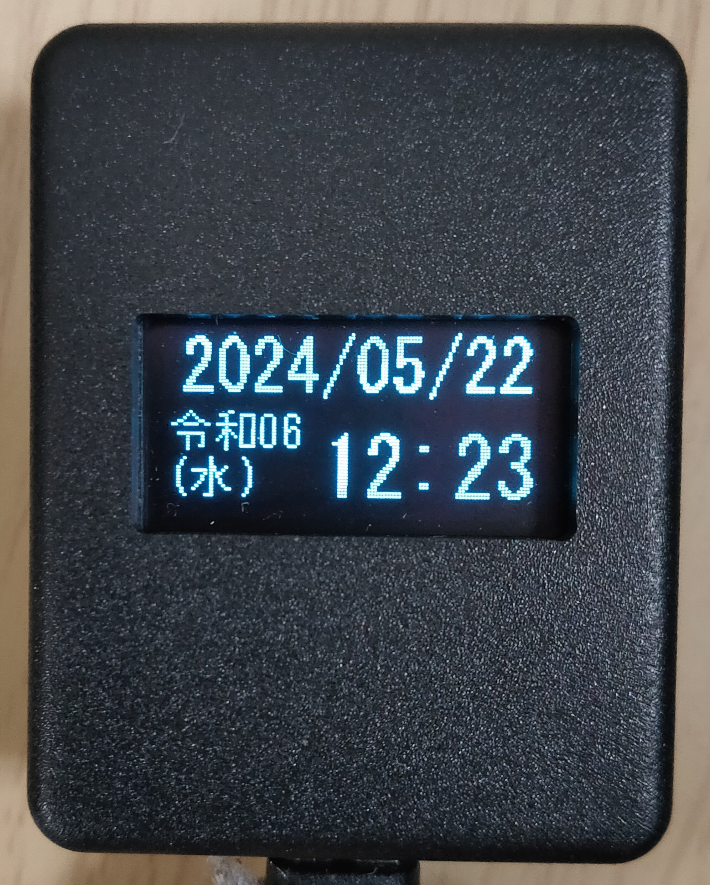 ディスプレイはモノクロ(黒/青緑)の0.96インチOLED(有機EL)で暗い場所でも発光するのでくっきりと見えます。