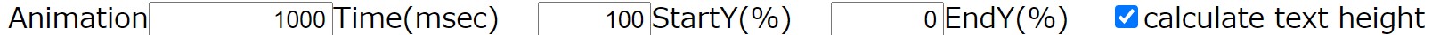 関連する設定はここです。画面下の枠外の位置が初期位置ですので、Y位置をマイナスにすると見える位置になるかと思います。垂直移動のアニメーション設定項目がありますがその部分は未使用ですので無視してください。