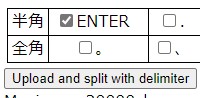 次に[Upload and split with dellimiter]ボタンを押します。これで上部に文節に分けられてリストが作成されました。