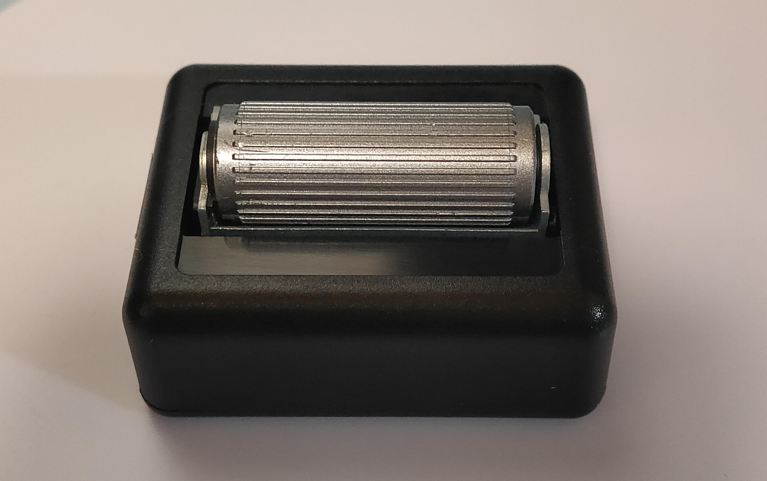 Rotating the wheel scrolls. Pressing the wheel in from above results in a click of the middle mouse button. (Clicking is disabled by default.)